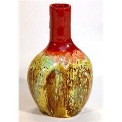 Ault style pottery vase, decorated in red, green and brown glaze, 15cm high…
