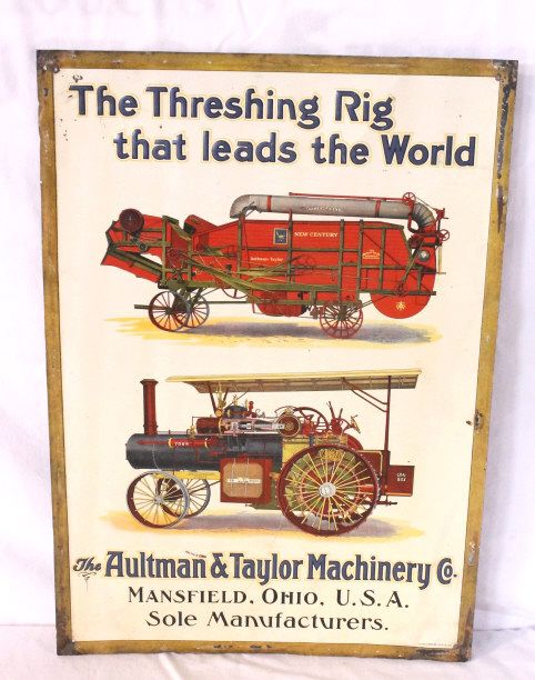 Hard to find in this good of condition ! Single-sided, self-framed. "The threshing rig that leads the world". Super graphics! 19 1/4" x 13 1/2". Made by the Meek Company from Coshocton, Ohio.