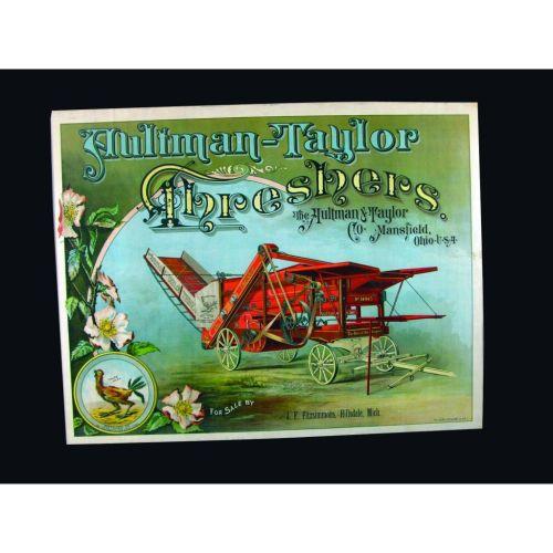 Aultman Taylor Threshers Paper Sign, Altman and Taylor Co. Mansfield, OH. Distributors J. Fitzsimmons, Hillsdale, MI. In original frame, tear at 3:00 otherwise excellent original condition. 33 X 27 1/3 inches overall.