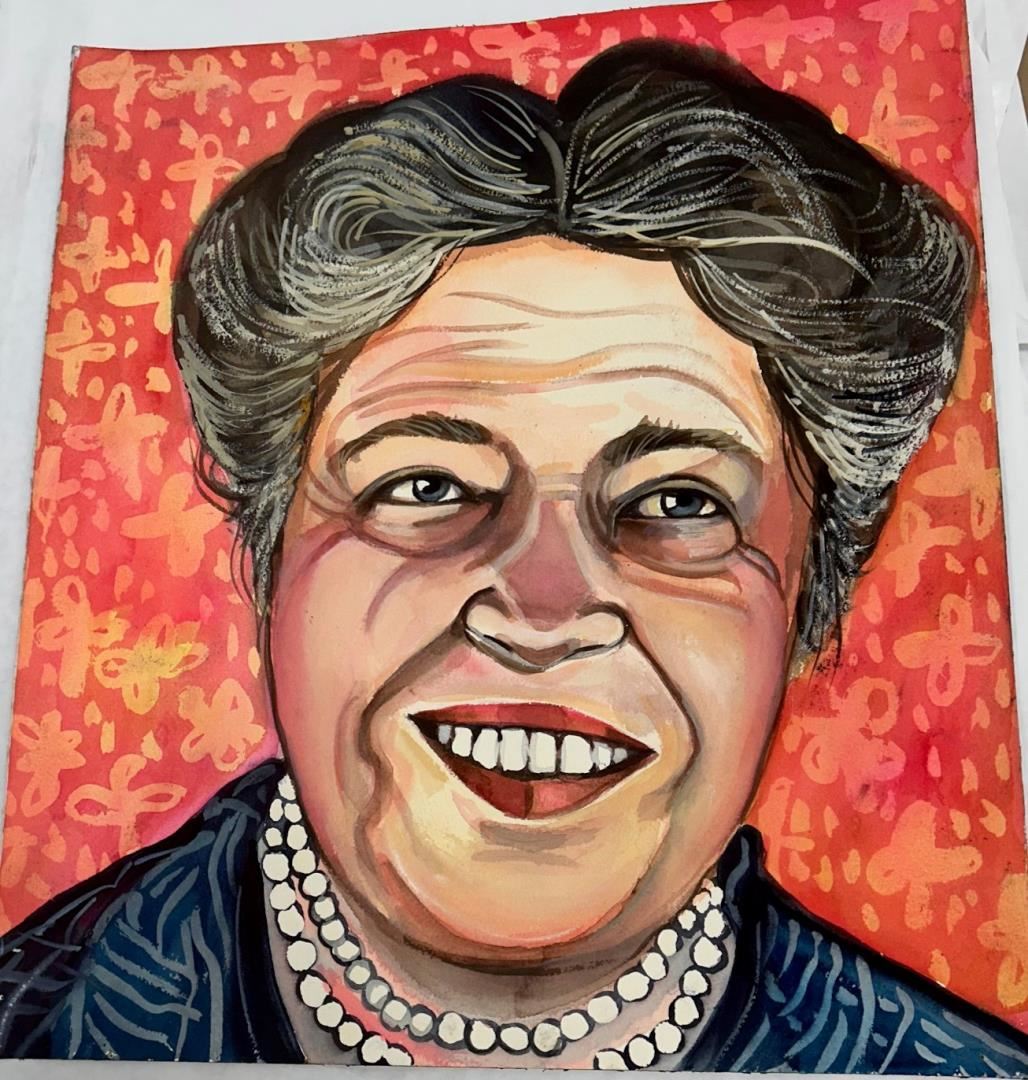 A pastel & watercolor portrait of iconic character Aunt Bea an 18x18" original on deckled fine art paper, by Anonymous