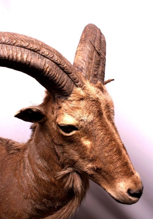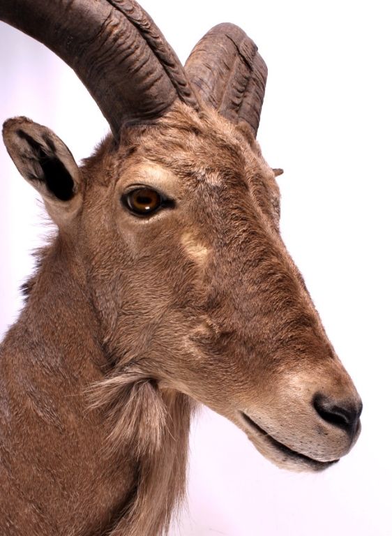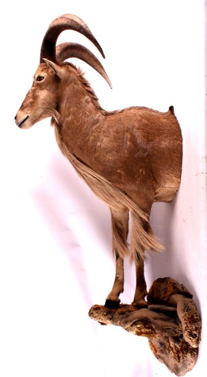 This is a half sized mount showing a rare Barbary Auodad Sheep. This Ram shows an impressive large set of horns and flawless mount. This is a very well made mount. This Auodad mount is a large trophy size and can be found in Northern Africa, North America, Southern Europe, Middle East, and other areas. Spread measures 24" and over 3" x 3". For shipping, the crate size will be 32" x 25" x 66" and will weigh 146 lbs. The packaging fee will be $125.