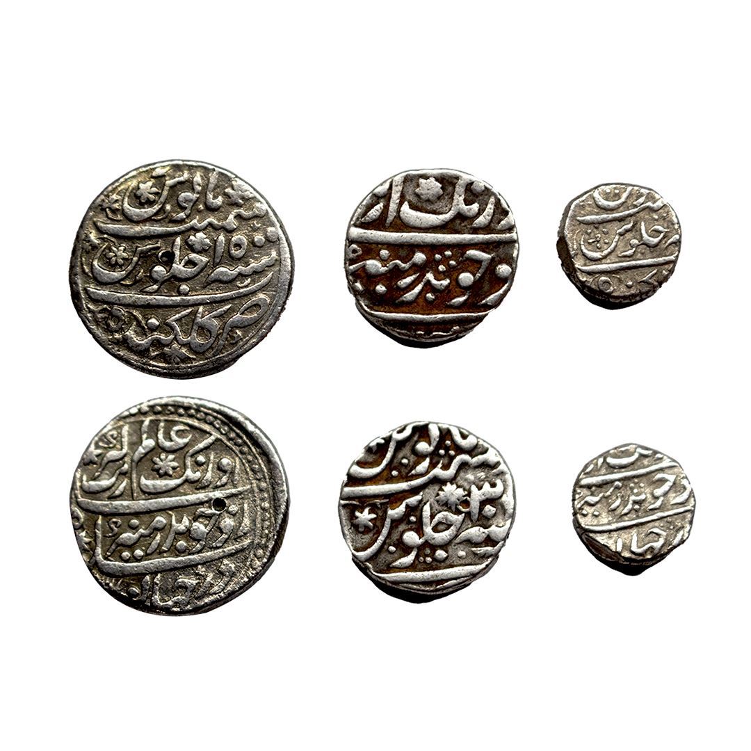 Aurangzeb (AH 1068-1118 / 1658-1707 AD), A set of Silver Rupee, ½ and ¼ Rupee (3 coins), 11.26g.,5