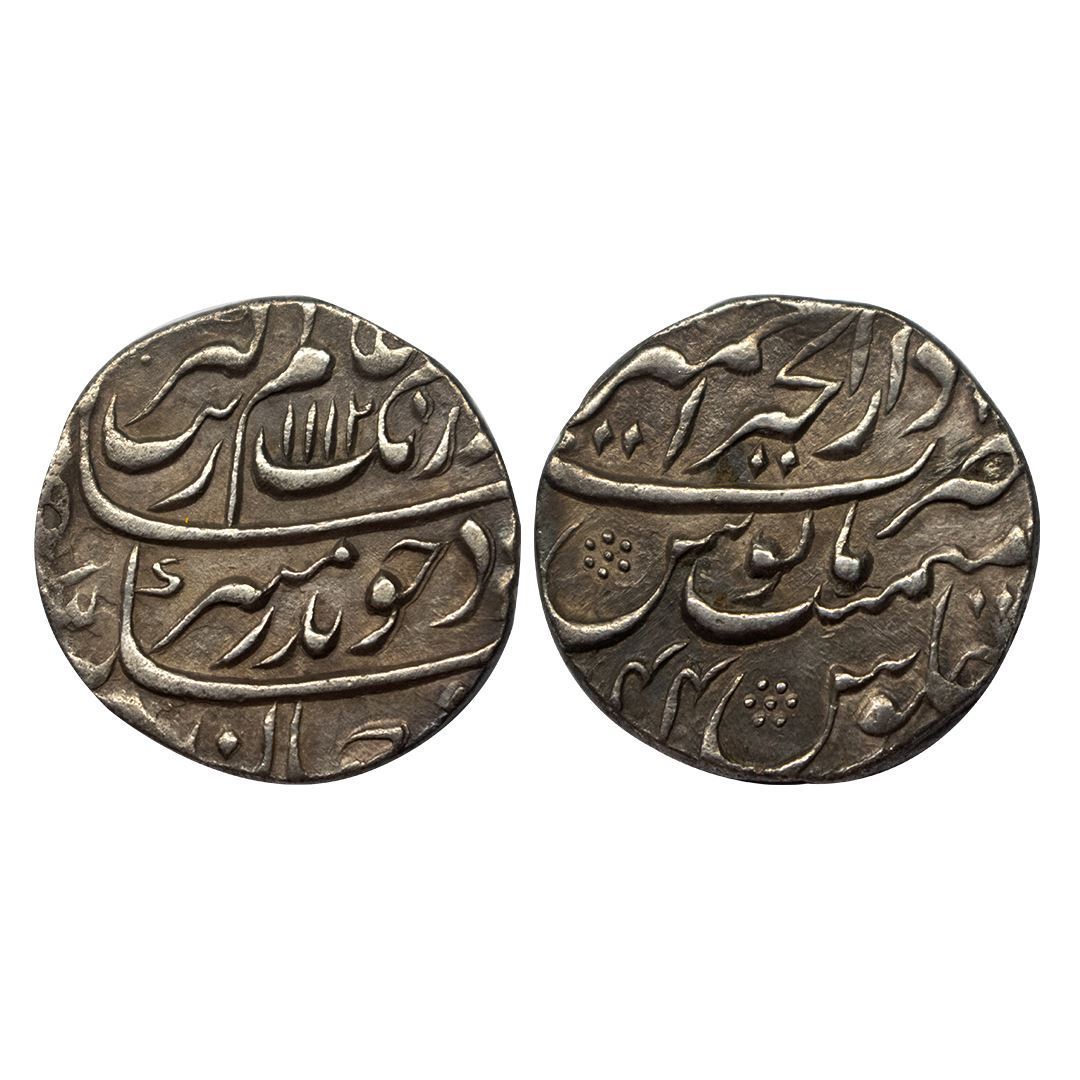 Aurangzeb, Rupee, Ajmer Dar ul Khair Mint, Silver, Badr Munir type. Mint name in the top line on rev