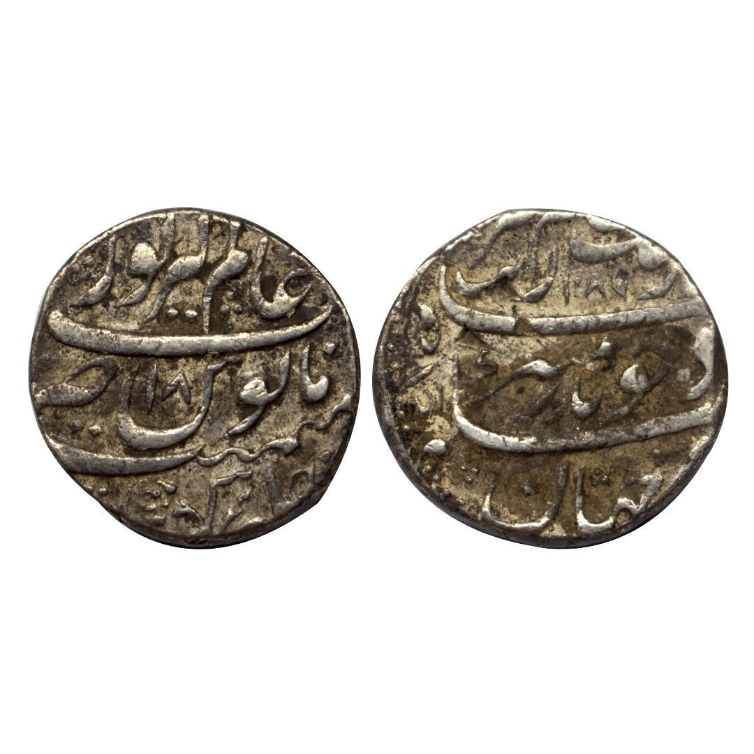 Aurangzeb, Rupee, Alamgirpur Mint, Silver, Badr Munir type. Complete Mint name in the top line on re