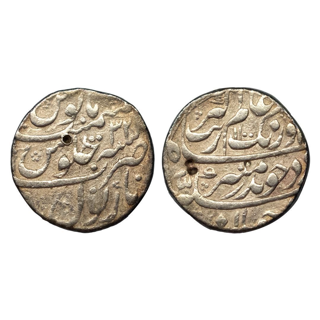 Aurangzeb, Rupee, Narnol Mint, Silver, Badr Munir type. Complete Mint name in the bottom line on rev, AH 1100, RY 32. Test Marks, Very Fine, Scarce.