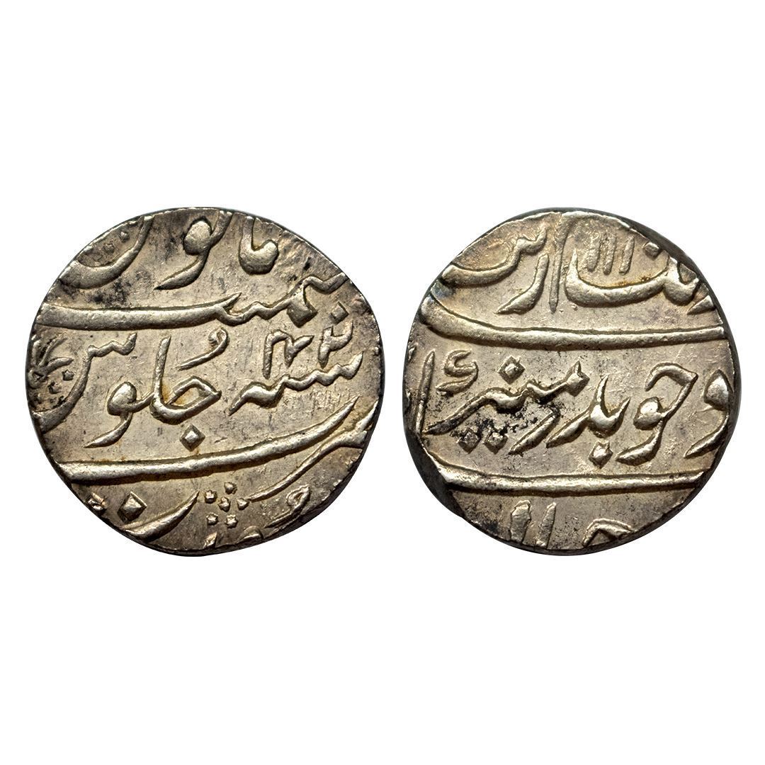 Aurangzeb, Rupee, Surat Mint, Silver, Badr Munir type. Complete Mint name in the bottom line on rev, AH 1110, RY 42. No Test Marks, Almost UNC with lustre.