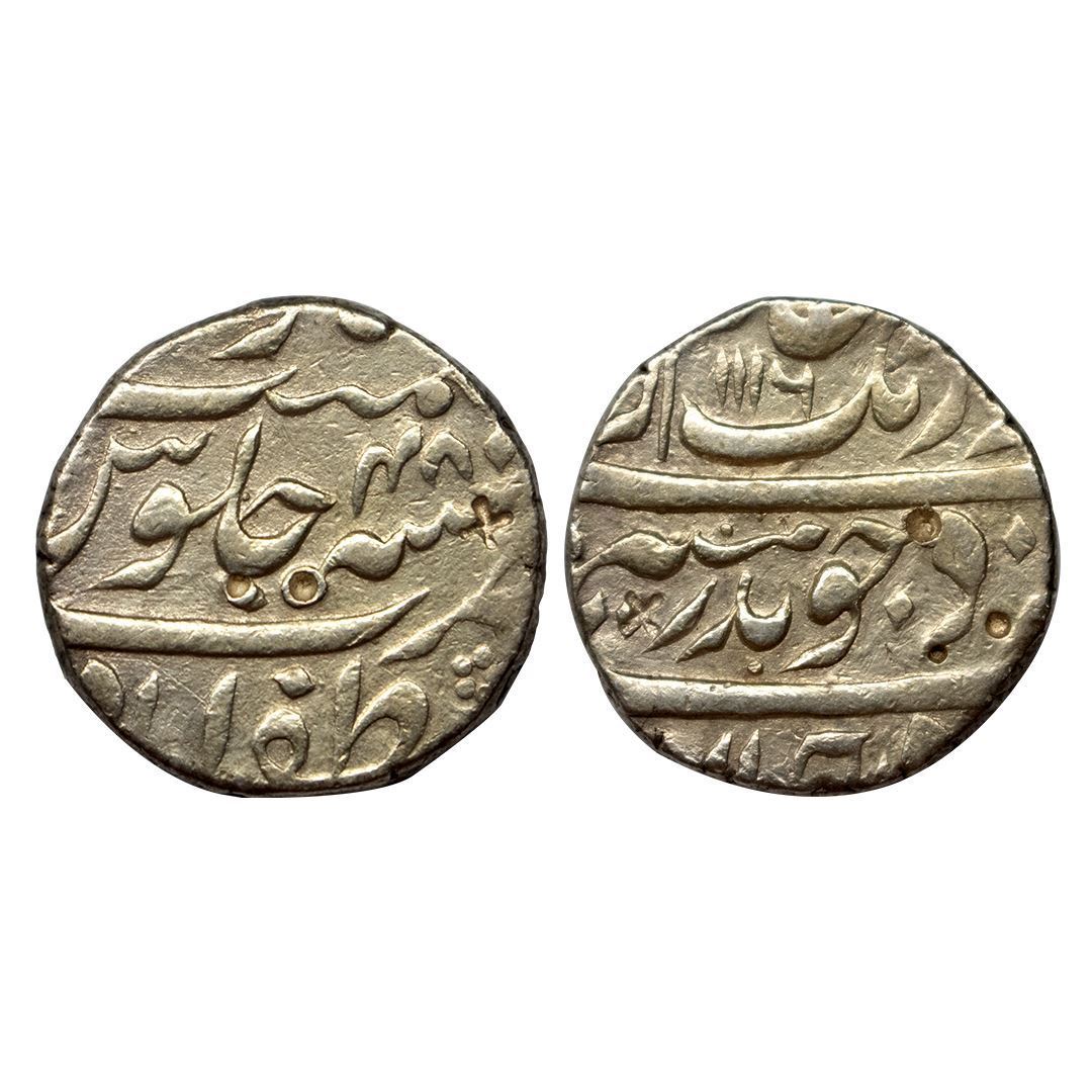 Aurangzeb, Rupee, Zafarabad Mint, Silver, Badr Munir type. Mint name in the bottom line on rev, AH 1116, RY 48. Test Marks, Very Fine+, Scarce.