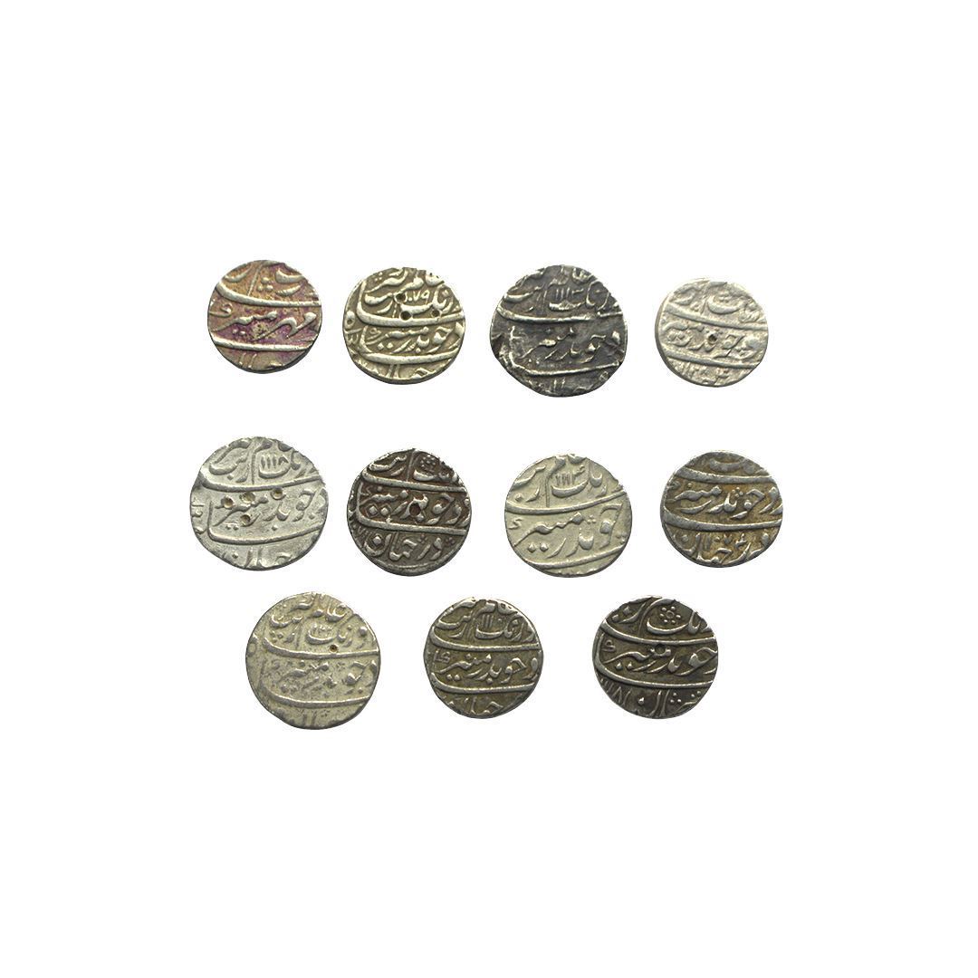 Aurangzeb Silver Mix Rupees Lots (11) Mint ( Akbarnagar , Katak , Multan , Surat , khambayat , Golkunda , Ahmedabad , Darul Khair Ajmer, Darul Khilafat shahjahanabad , Mustaqir al Khilafat Akbarabad