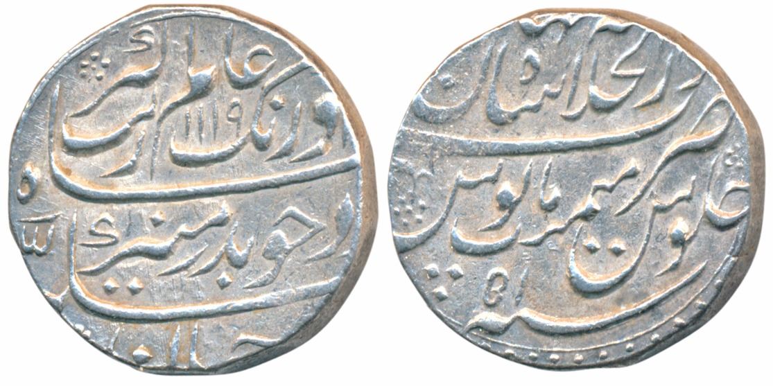 Aurangzeb, Silver Rupee, 11.42g, Dar-ul-Khilafat Shahjahanabad Mint, AH 1119/51, posthumous issue (KM 300.81). About Extremely Fine, Scarce.