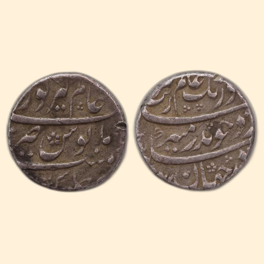 Mughals, Aurangzeb (AH 1068-1118 / 1658-1707 AD), Silver Rupee, 11.35gms, Alamgirpur (Vidisha) Mint, Badr-i-Munir couplet, complete mint name on rev top area. (KM # 300.9).