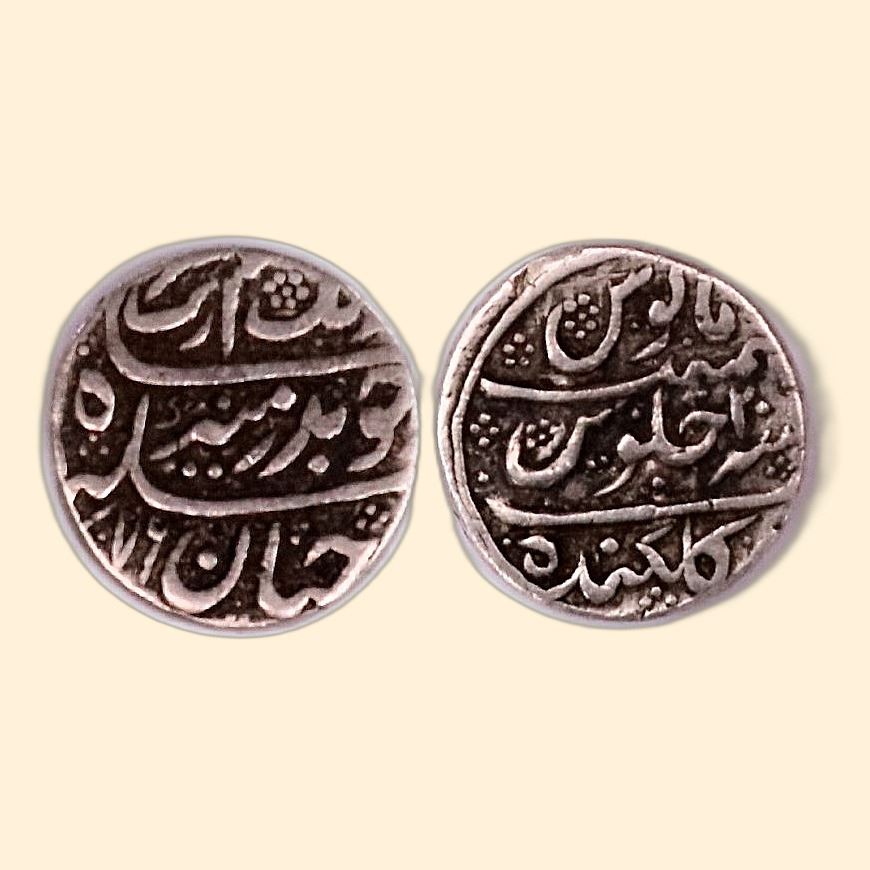 Mughals, Aurangzeb (AH 1068-1118 / 1658-1707 AD), Silver ¼ Rupee, 2.91gms, Gulkanda Mint, AH 1079, RY 20, complete mint name on rev bottom area. (KM # 293.1).