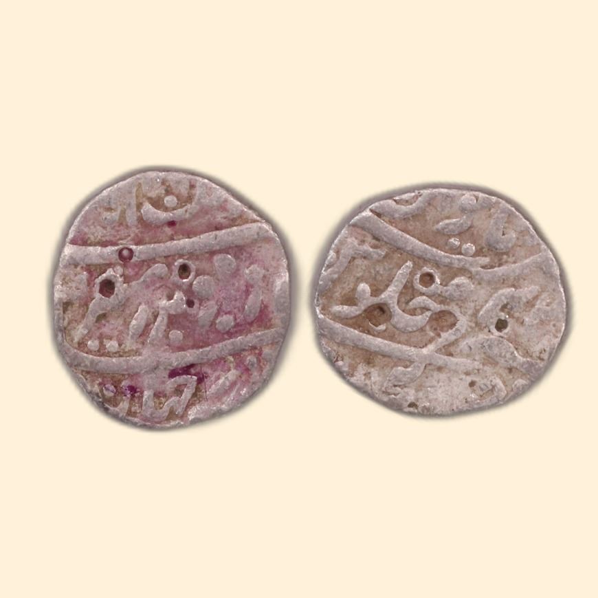 Mughals, Aurangzeb (AH 1068-1118 / 1658-1707 AD), Silver Rupee, 11.36gms, Kanji Mint, RY 42, crude calligraphy on both side. (KM # 300.46).