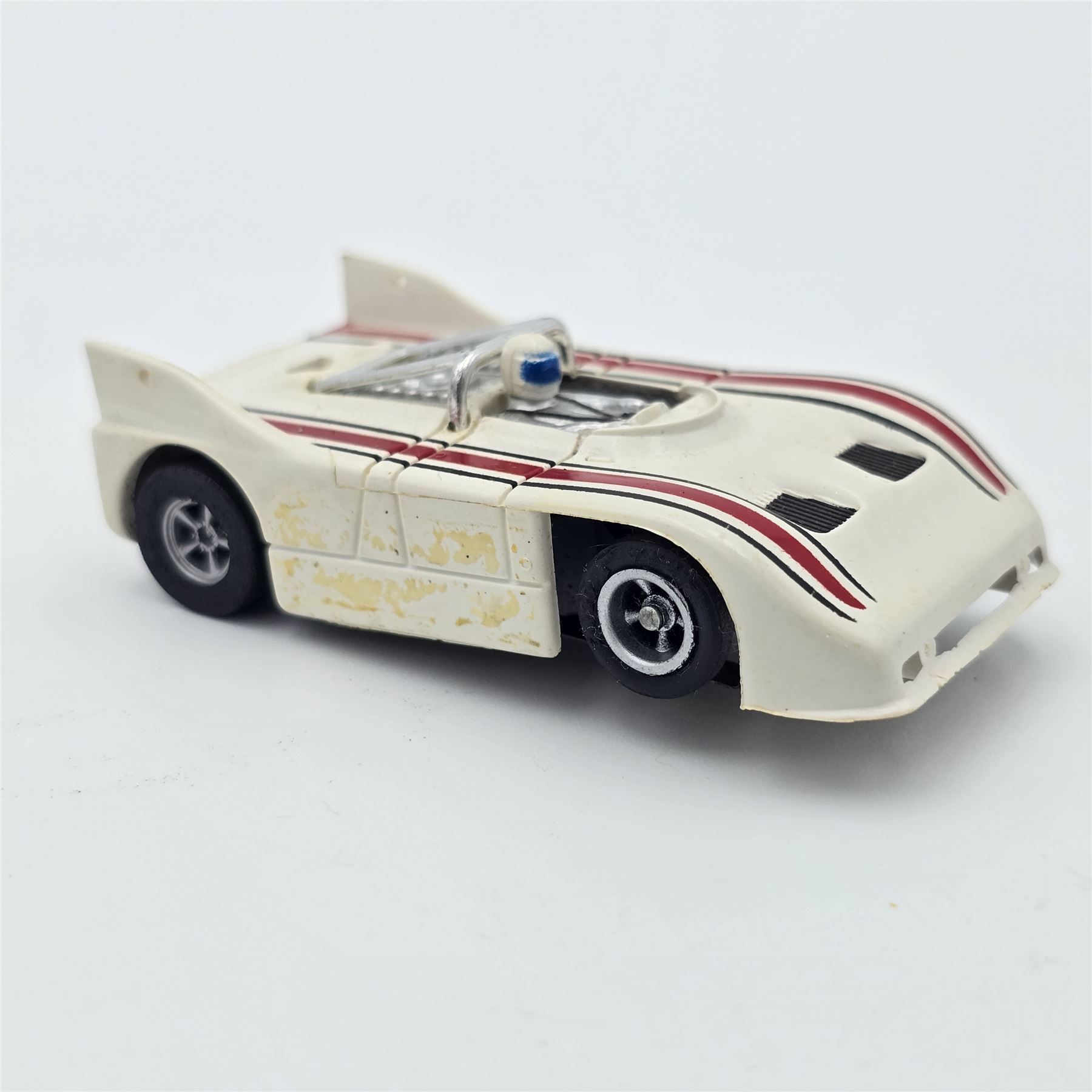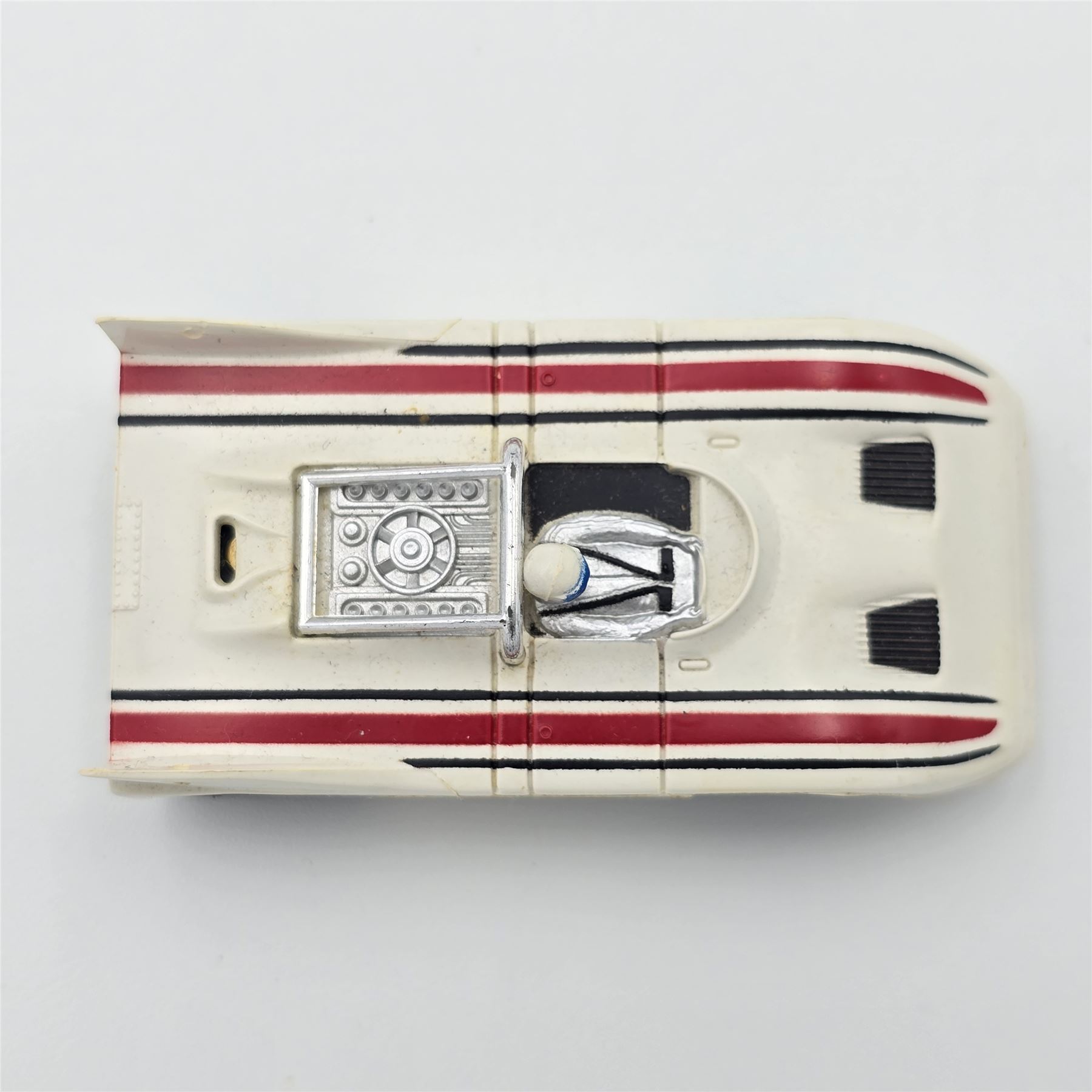 Car- looks to be in very good condition but is missing its rear spoiler and one side decal has come off as seen, pickup shoes show wear as seen