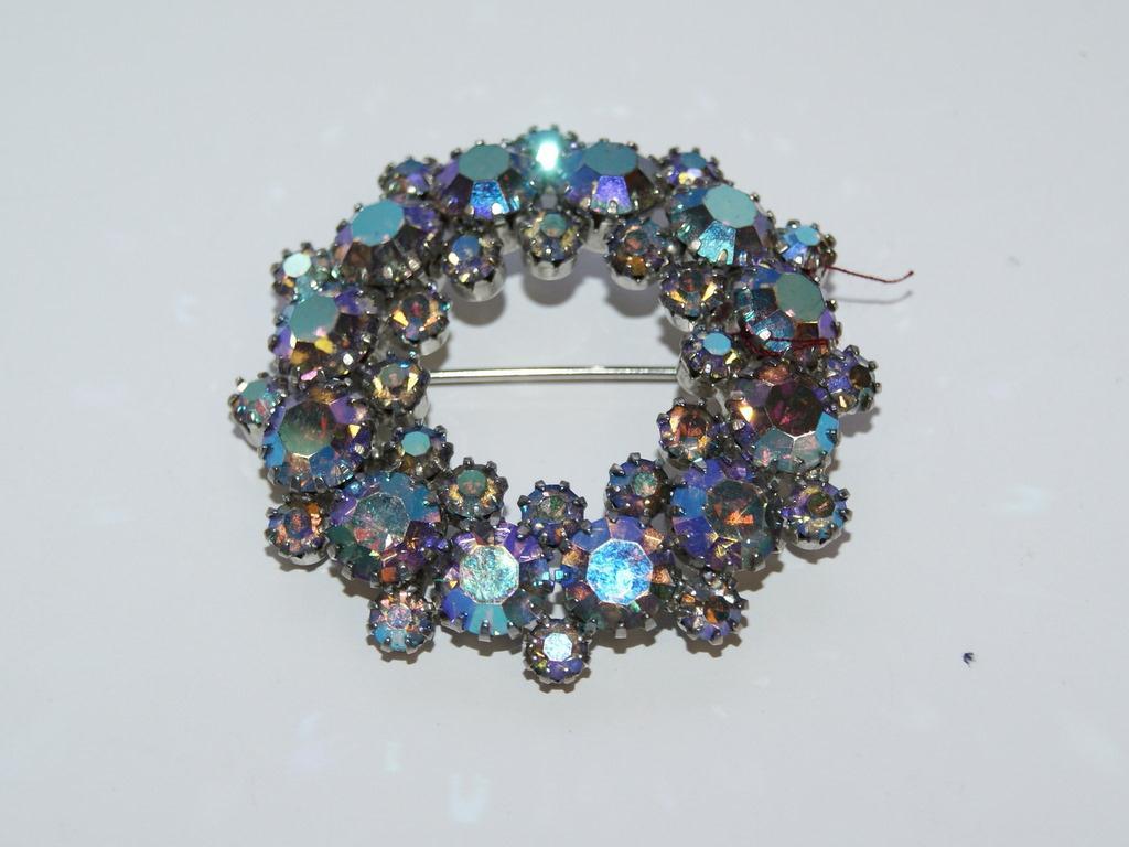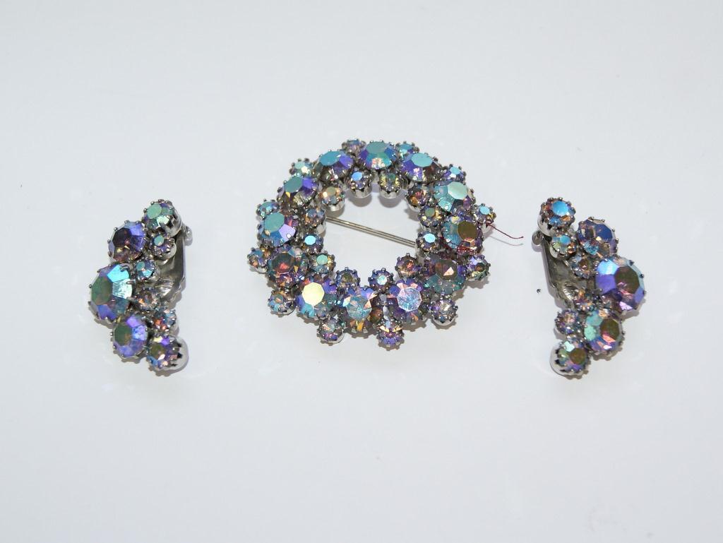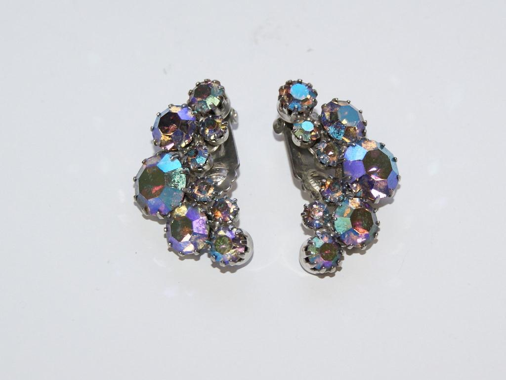 Antique Kramer Prong set Aurora Borealis Facet Crystals