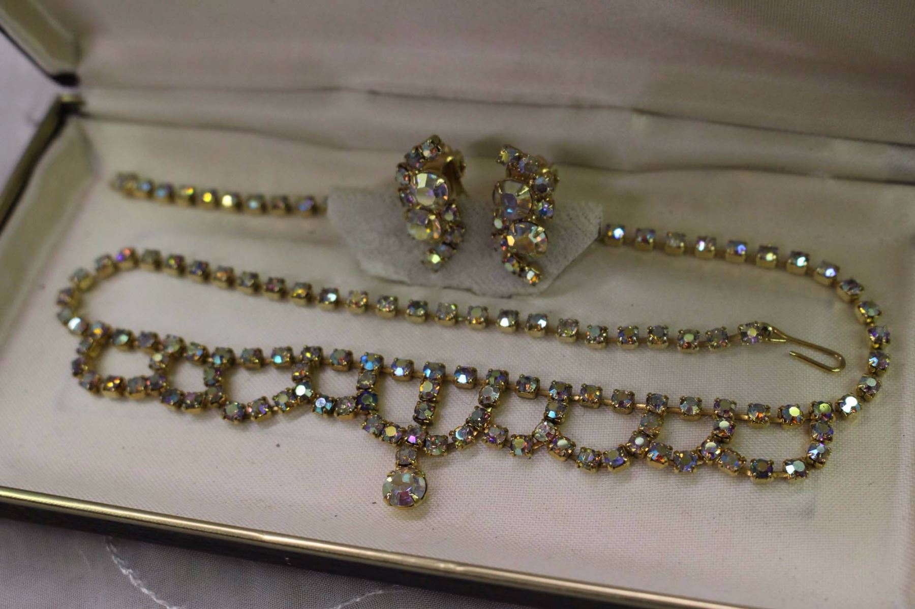 Aurora Borealis Necklace set, 1950's Champagne Color, Original Box