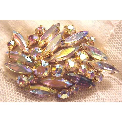 <table width="100%" border="0" cellspacing="0" cellpadding="4"><tr><td><em> </em></td></tr><tr> <td width="100%"> Lovely 1940's style brooch, Love the beautiful mixture of various size higly faceted stones creating this 1940's masterpiece of 1940's jewelry,consisiting of beautiful iridescent Aurora Borelais stones al secured in pronged setting.Brooch measures over 2" long and over 1 1/4" wide.Excellent condition, US Buyer please pay 6.00 for shipping + insurance.Thank You very much for looking! </td></tr><tr> <td> </td></tr><tr> <td>Reference #: lal1381</td></tr><tr><td>Condition:Excellent</td></tr><tr><td>Year:1940's</td></tr><tr><td>Title:Aurora Borelais Rhinestone BROOCH</td></tr><tr><td>Location:Pembina, ND</td></tr></table>