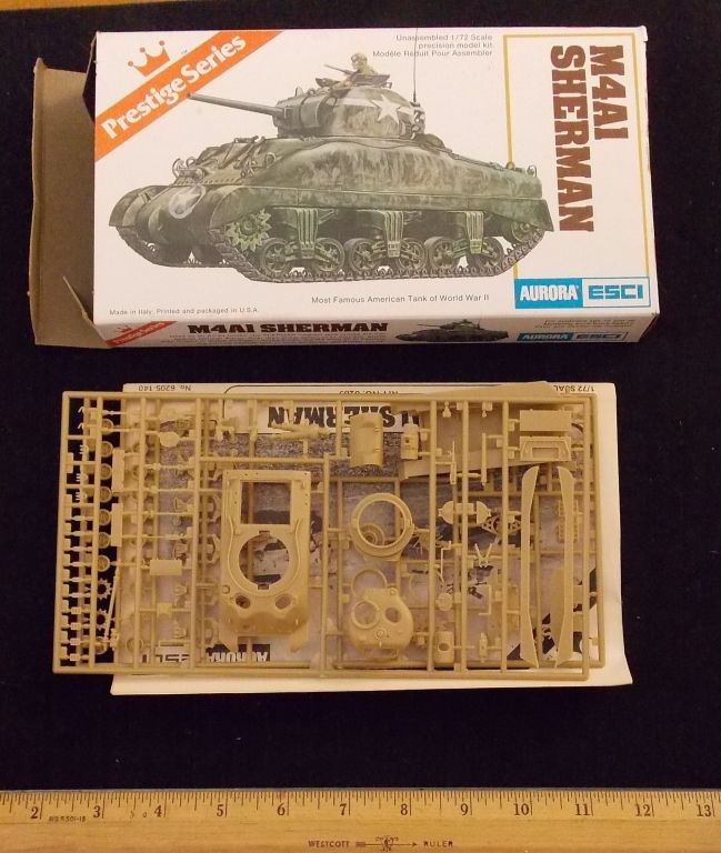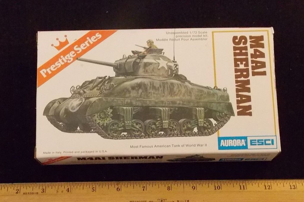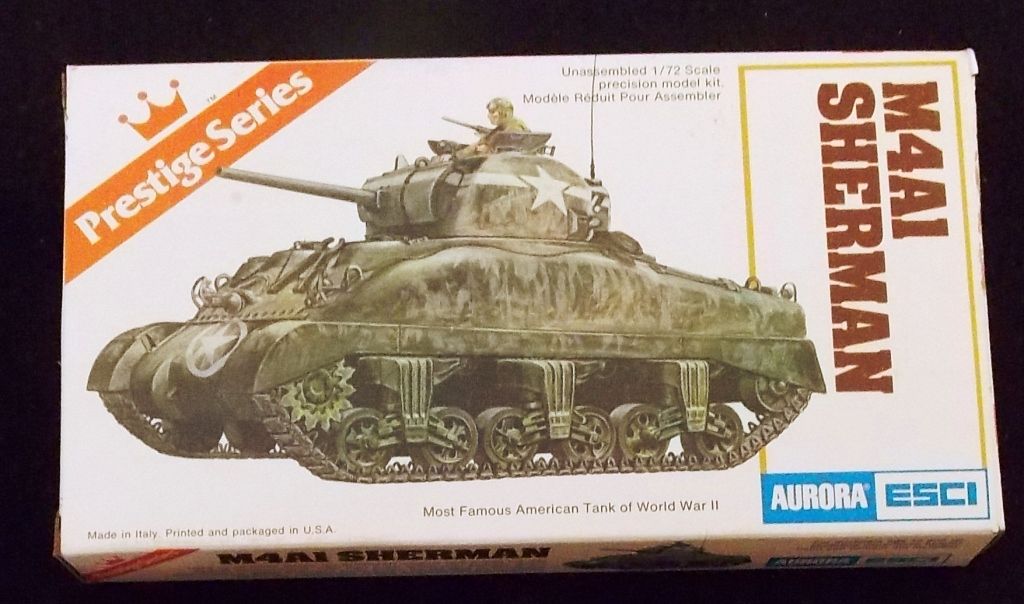 Aurora ESCI - 1/72 Scale M4A1 Sherman Tank Militar Unbuilt Model Kit in Original Packaging. Comes as