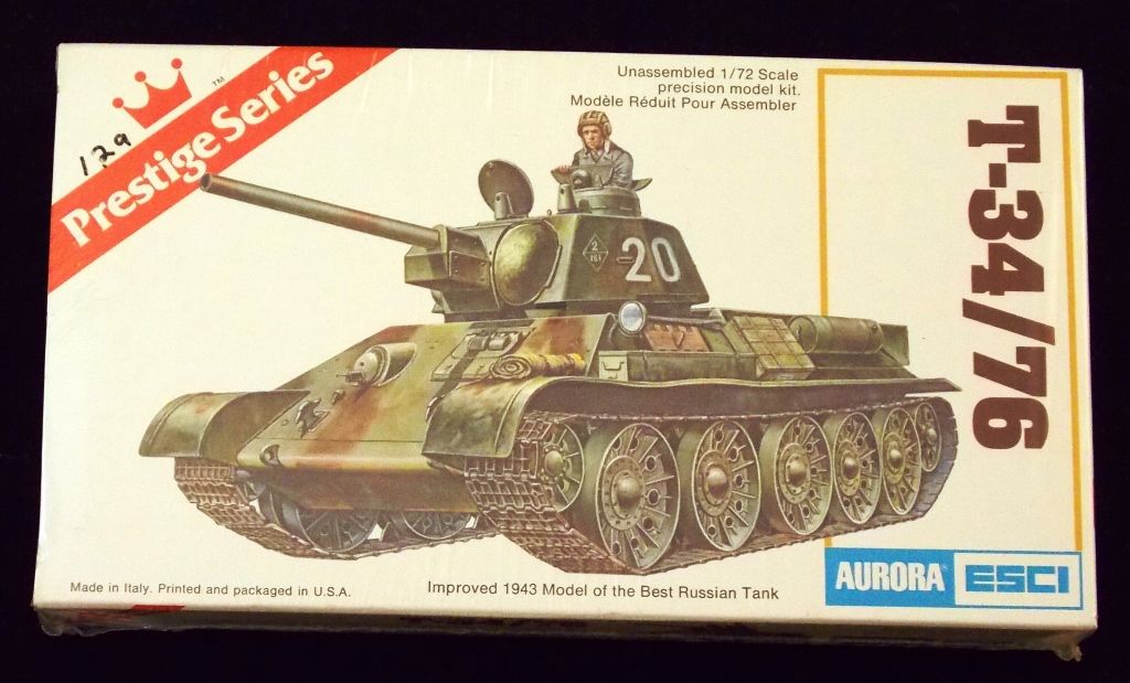 Aurora ESCI - 1/72 Scale T 34 / 76 Military Vehicl Unbuilt Model Kit in Original Packaging. Comes as