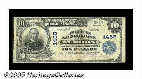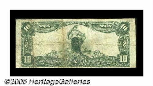 <B>Aurora, IL</B></I> - $10 1902 Plain Back Fr. 632 <B>The German American NB</B></I> Ch. # 4469<BR>Originally chartered as The German American National Bank, this institution, like so many others similarly named, adopted a more acceptable nomenclature in the face of anti-German feeling prevalent after our entry into World War I. This <B>Fine-Very Fine</B></I> example retains purple stamped officers' signatures and is free from any pinholes or other similar distractions.