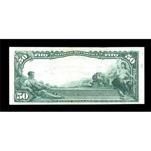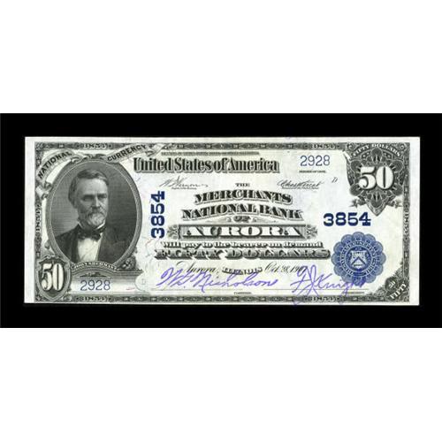 <B>Aurora, IL</B></I> - $50 1902 Plain Back Fr. 677 <B>The Merchants NB</B></I> Ch. # 3854<BR> A beautiful example for type, with exceptionally vivid inks, bright white paper, and bold purple signatures. <B>About Uncirculated,</B></I> a premium piece.<BR><BR><b>Shipping:</b> Coins & Currency (<a target="_blank" href="http://www.heritageauctions.com/common/shipping.php">view shipping information</a>)