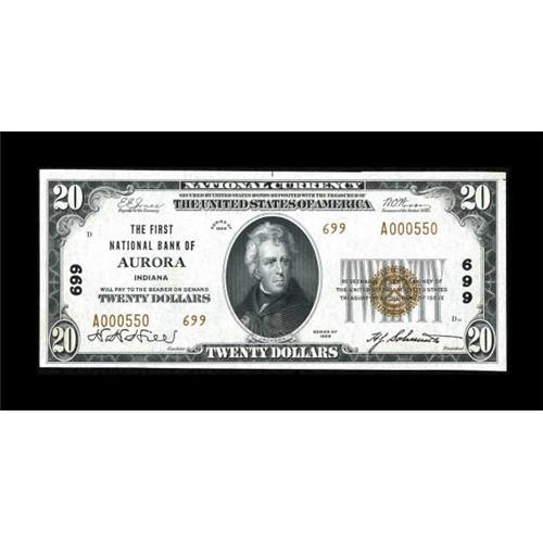 Aurora, IN - $20 1929 Ty. 2 The First NB Ch. #