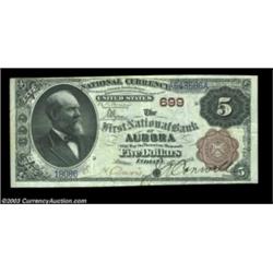 Aurora, IN - $5 1882 Brown Back Fr. 467 The First NB Ch. # 699An attractive pen signed $5 Brown Back with a most distinctive fancy layout. Bright Very Fine+. Important notice: Heritage usually auctions material at the rate of 200-250 lots per hour. On some occasions eBay Live bid software or the Internet may not be able to keep up with the pace of the auction. We recommend placing a realistic absentee bid now as insurance to avoid disappointment. Occasionally the auctioneer may eliminate or reject an eBay Live bid, and the auctioneer may also reopen a lot after the close of the eBay live bidding (usually because we missed an audience bid), and may reject your bid even if it shows you as the winning bidder. By bidding via eBay Live, you agree that Heritage may award the lot to another bidder at its sole discretion under the circumstances described above or any other reasonable circumstances. Also please note that all Heritage lots purchased through eBay Live carry a 20% Buyer's Premium. Please make sure you read the Terms and Conditions before you bid.
