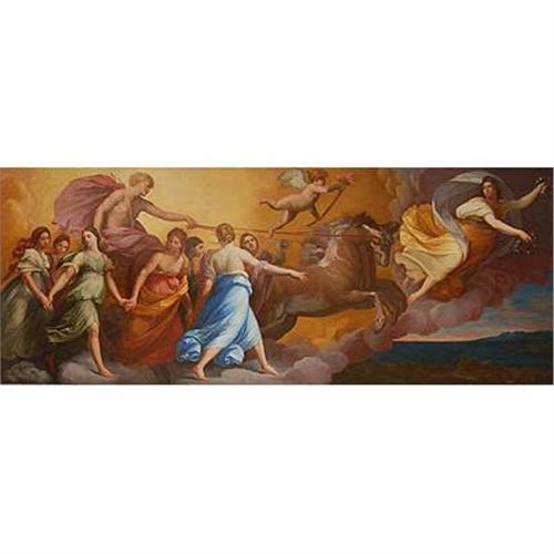 This is a 19th century copy after the 1614, fresco, at the Casino Rospigliosi, Palazzo Pallavicini, Rome. During Guido Reni's second stay in Rome he directly tackled themes from classical Antiquity. While this composition was openly derived from classical art, it was meant in the spirit of purest love and has a genuine if rather insipid beauty.