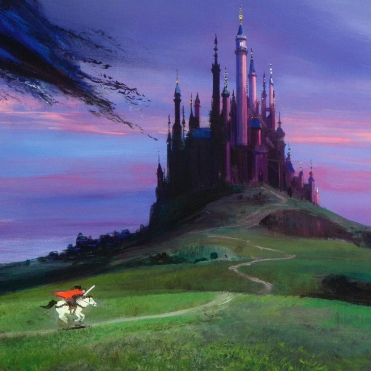 "Aurora's Rescue" is a framed limited edition giclee on canvas, numbered 65/300 and hand signed by Peter Ellenshaw (1913-2007)! This piece is licensed by Disney Fine Art. Includes Certificate of Authenticity! Measures approx. 40.5" x 28.5" (with frame); 35.5" x 23.5" (image). ** Please note: there is chipping at the corners of the frame. **