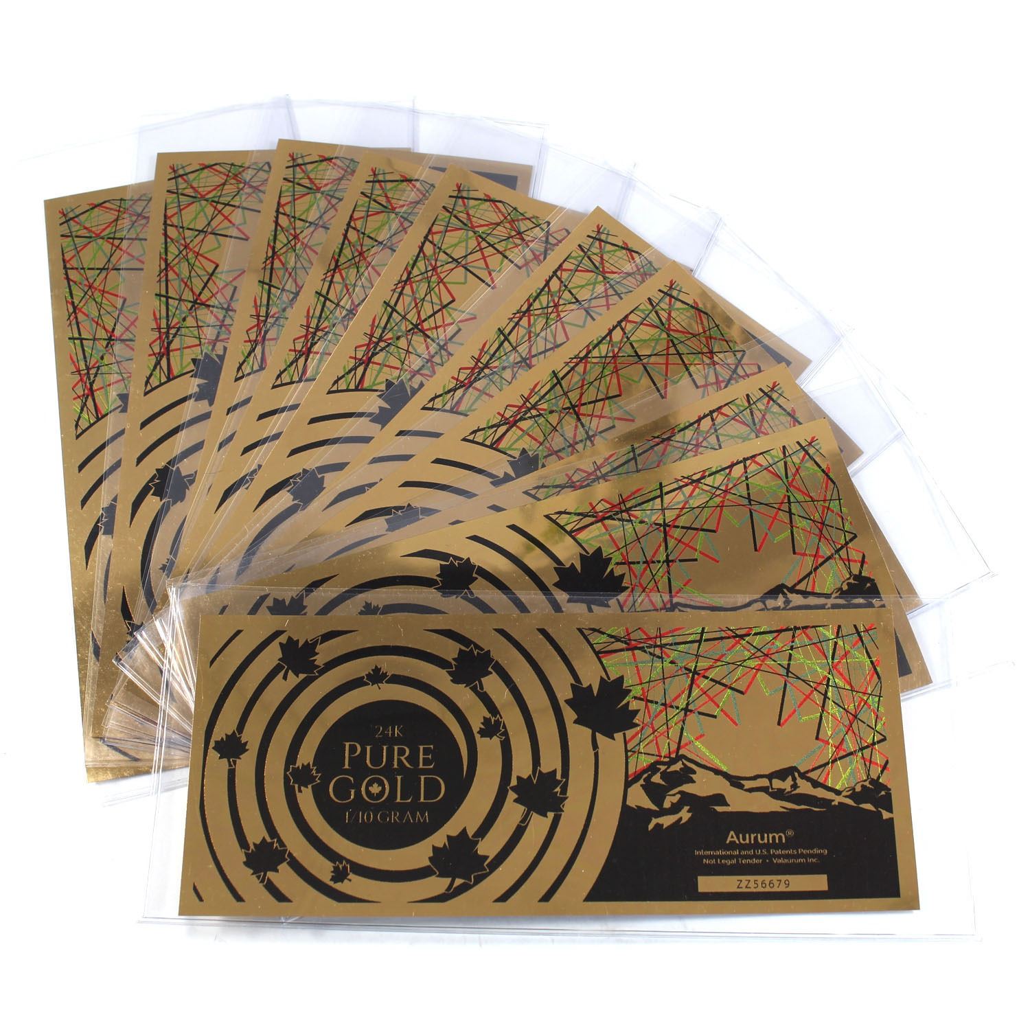 Aurum 1/10 Gram .9999 Fine Gold Sheets. 10pcs