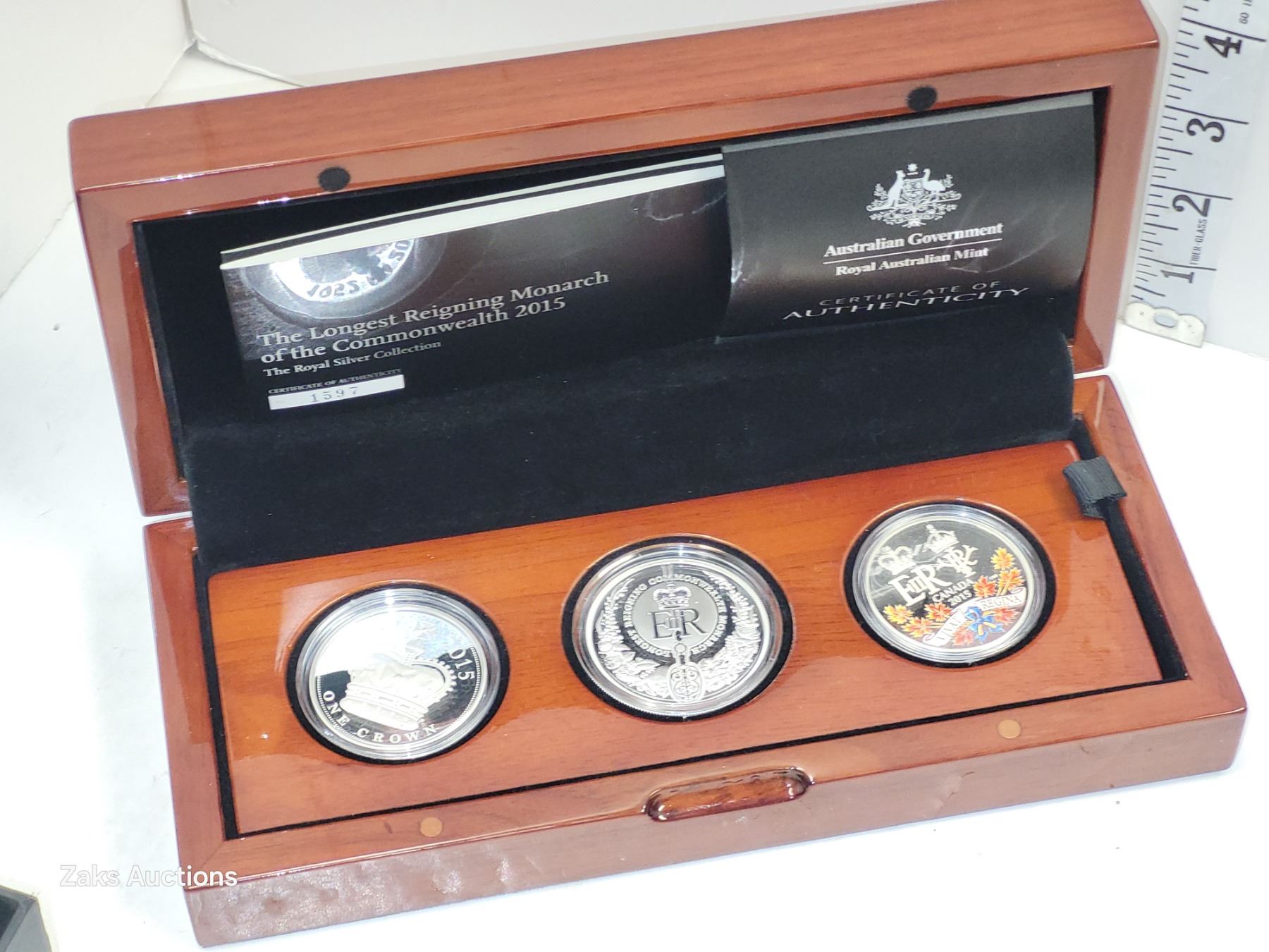 Ausie Mint Limited Coin Set #1597/2015 Made COA $'s & Pounds