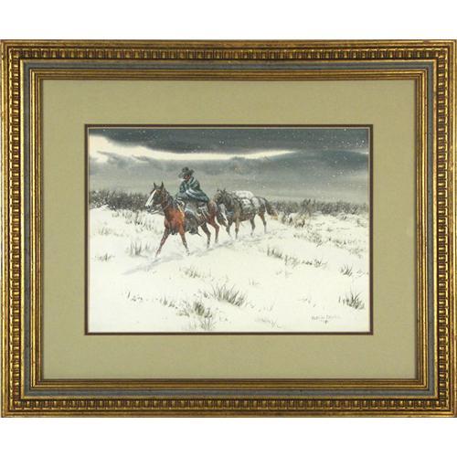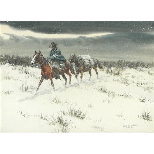 Austin Deuel (b.1939) Gouache, Winter Cowboy Scene, image size 10 1/2" x 14 3/8", signed lower right