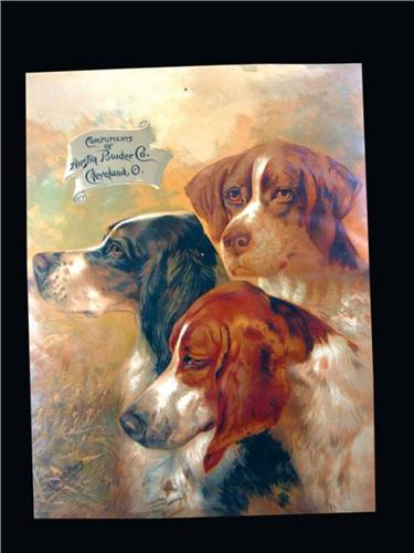 Austin Powder Company Poster, depicting three dogs, artist Edmund H. Osthaus. Matted and framed. Small dark spot at 12:00, no bands otherwise excellent original condition. Image 19 X 25 inches.