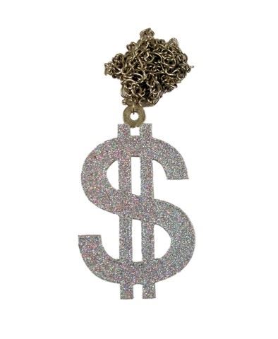 From the ever classic Austin Powers: International Man Of Mystery (1997) is this shiny metal dollar sign necklace. (approx. 5 1/2" x 3")