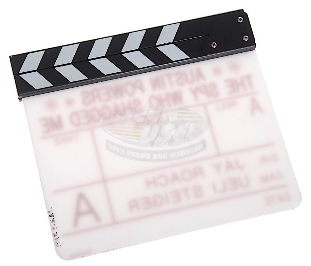 (New Line Cinema, 1999) This clapperboard was autographed by Mike Myers after filming. Though this is a production clapper board, it may have gone unused as it is in near perfect condition. The back of the clapper board has the name "Max Neal" (Second Assistant Cameraman) written on one edge.