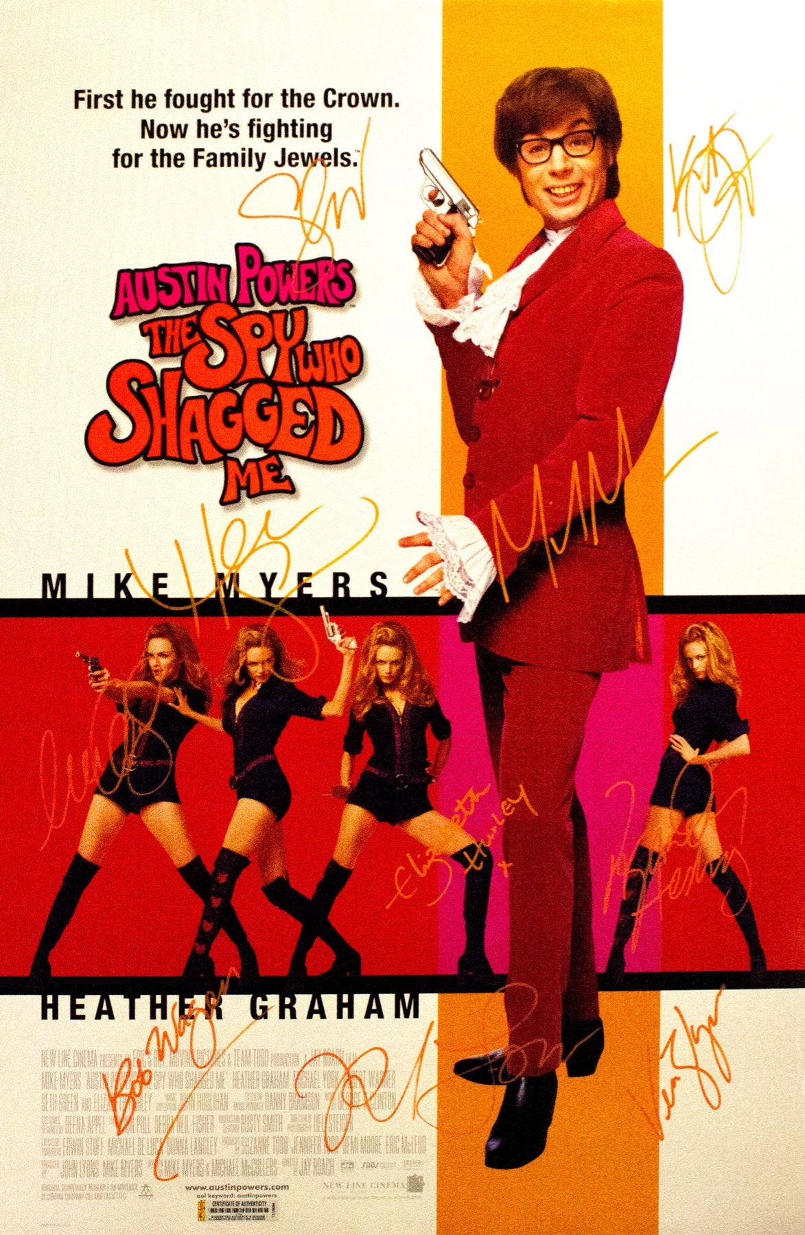 Signed by Mike Myers, Heather Graham, Elizabeth Hurley, Seth Green, Robert Wagner, Rob Lowe, Verne Troyer, Kristen Johnston, Mindy Sterling and Gia Carides. This item comes with a Certificate of Authenticity from a third party authenticator. This Certification of Authenticity does not imply that the item will be certified by any other rival authentication companies. The accompanied certification is the only certification the auction company can confirm. These items are being sold as collectable pieces and there is no guarantee that this item can be resold on any online marketplace. Each of these companies has their own policies and politics.