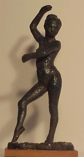 Austin Productions BALLERINA, painted plaster sculpture, 19" high, stamped “Austin Prods", mounted to wood base, several small chips, encrusted dirt.