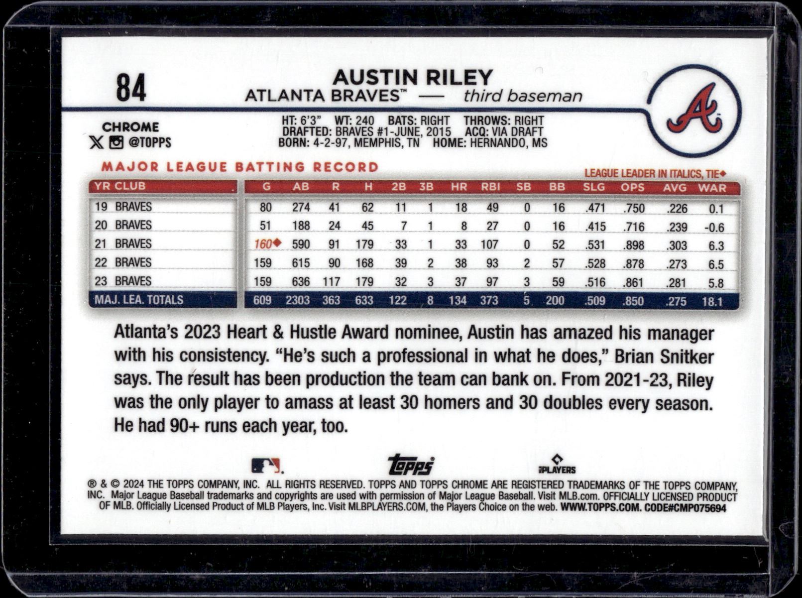 Austin Riley Gold Raywave Refractor /50 2024 Topps Chrome #84