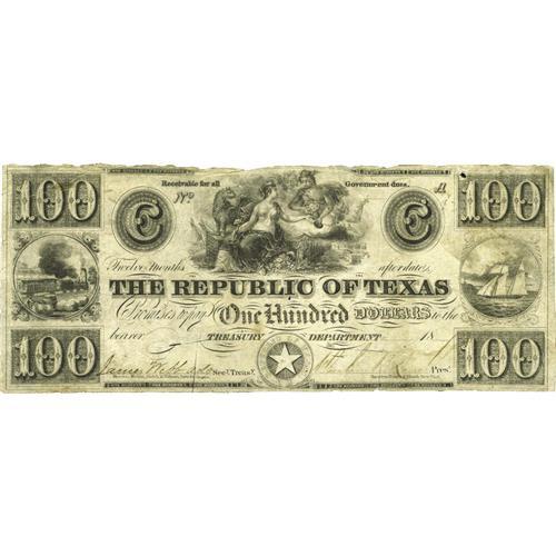 Austin, TX- Republic of Texas $100 18?? Cr. A8 Medlar 2