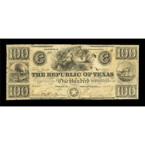 Austin, TX- Republic of Texas $100 Apr. 24, 1839
