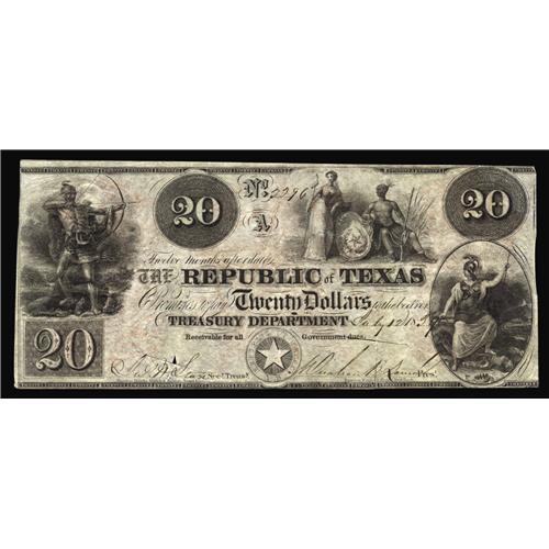 Austin, TX- Republic of Texas $20 July 12, 1839 Cr. A6 Austin, TX- Republic of Texas