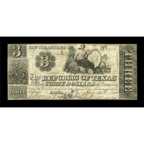Austin, TX - Republic of Texas $3 Aug. 20, 1840