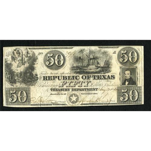 Austin, TX- Republic of Texas $50 Jan. 20, 1840