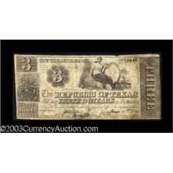 <TABLE cellSpacing=0 cellPadding=0 width="100%" bgColor=#000000 border=0><TBODY> <TR><TD width="100%"><TABLE cellSpacing=1 cellPadding=3 width="100%" border=0><TBODY><TR><TD width="100%" bgColor=#79735c><FONT face=arial color=#ffffff size=3><B>Description</B> </FONT></TD></TR><TR><TD width="100%" bgColor=#ffffff><FONT face=arial size=2><B>Austin, TX - Republic of Texas</B></I> $3 Aug. 1, 1841 Cr. A3 Medlar 3<BR>A decent example of this scarce and ever-popular denomination. <B>Very Fine,</B></I> CC. (275-375 ) </FONT></TD></TR></TBODY></TABLE></TD></TR></TBODY></TABLE><BR><TABLE cellSpacing=0 cellPadding=0 width="100%" bgColor=#000000 border=0><TBODY><TR> Important notice: Heritage usually auctions material at the rate of 200-250 lots per hour. On some occasions eBay Live bid software or the Internet may not be able to keep up with the pace of the auction. We recommend placing a realistic absentee bid now as insurance to avoid disappointment. Occasionally the auctioneer may eliminate or reject an eBay Live bid, and the auctioneer may also reopen a lot after the close of the eBay live bidding (usually because we missed an audience bid), and may reject your bid even if it shows you as the winning bidder. By bidding via eBay Live, you agree that Heritage may award the lot to another bidder at its sole discretion under the circumstances described above or any other reasonable circumstances. Also please note that all Heritage lots purchased through eBay Live carry a 20% Buyer's Premium. Please make sure you read the Terms and Conditions before you bid.</TR></TBODY></TABLE>
