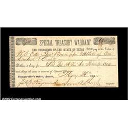 Austin, TX - State of Texas Special Treasury Warrant $180.00 May 26, 1855 Medlar UNLAn unlisted vari