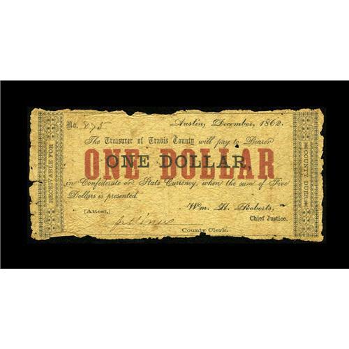 Austin, TX- Travis County $1 Dec. 1862 Medlar UNLThe va