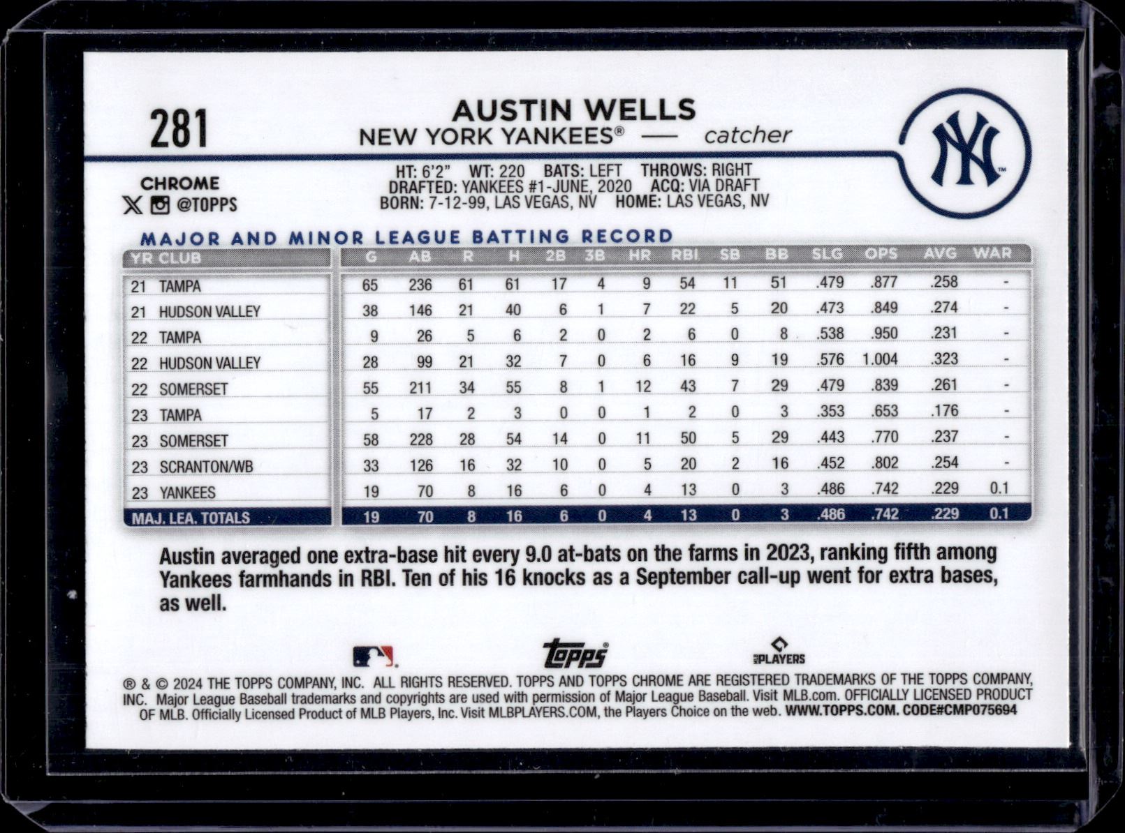 Austin Wells Hyper Prism RC 2024 Topps Chrome #281