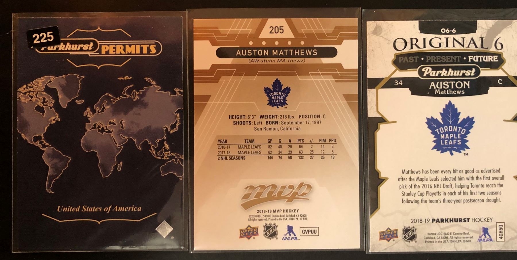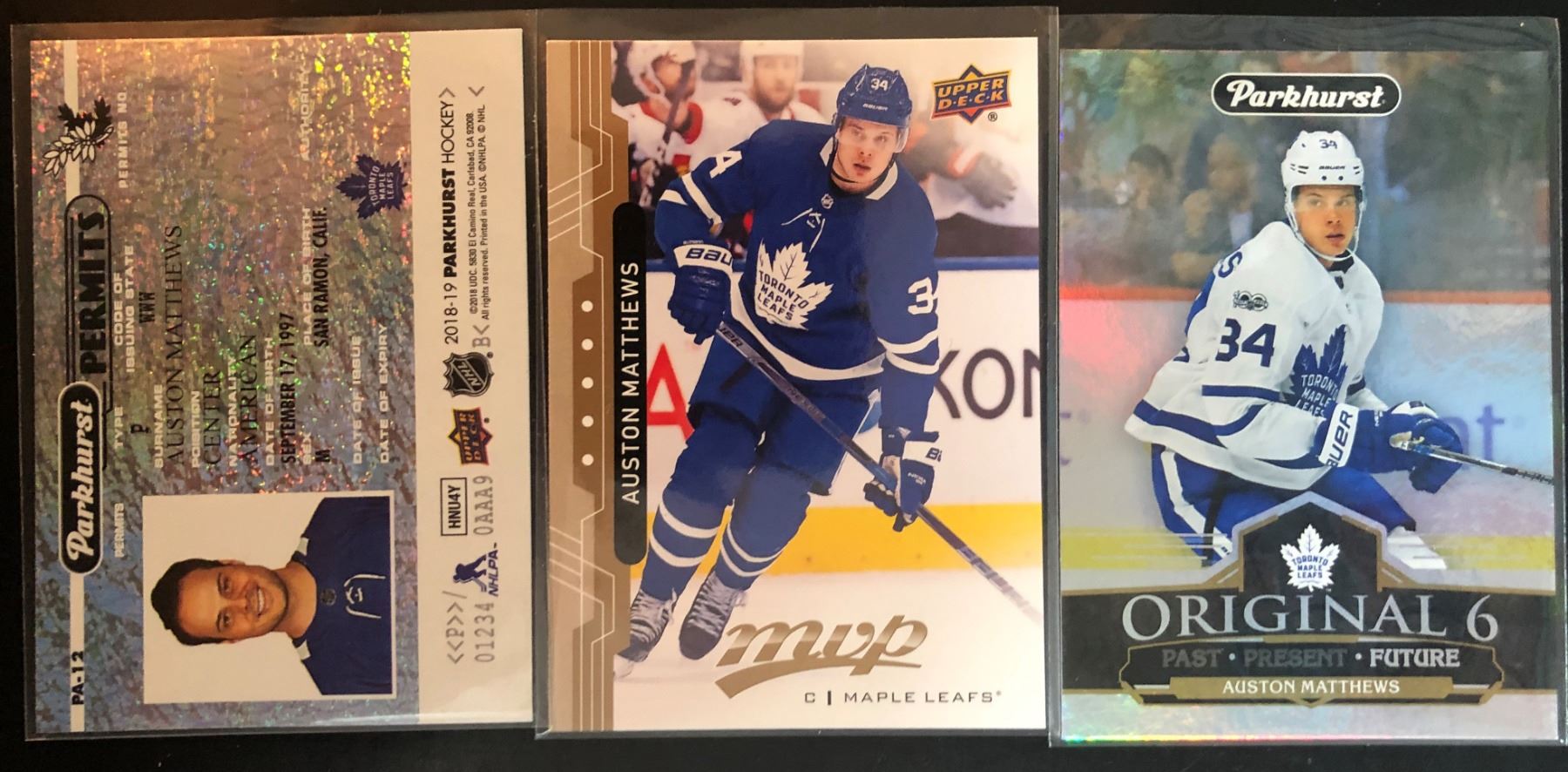 2018-19 Parkhurst Permits Card #PA-12. 2018-19 Parkhurst Original 6 Card #O6-6, And 2018-19 Upper Deck MVP Card #205.