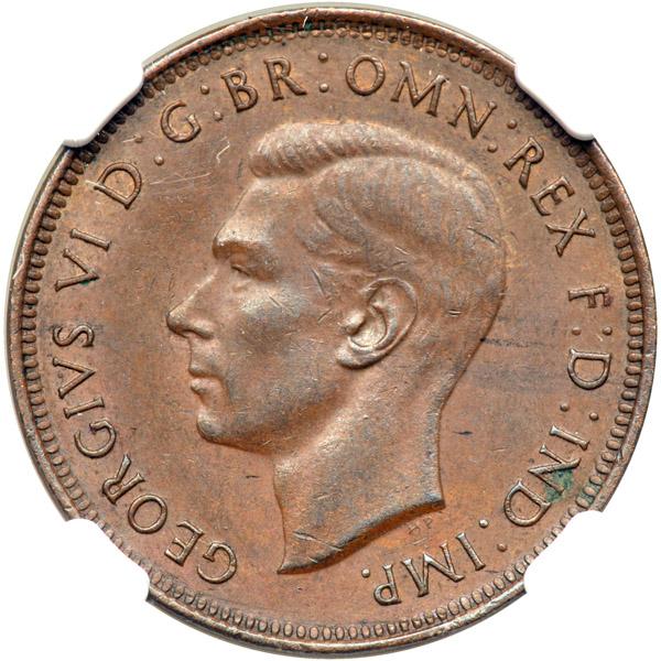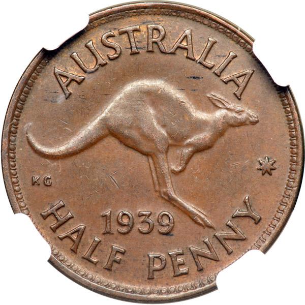 Australia. ½ Penny, 1939. KM-41. Kangaroo reverse. NGC graded AU-58 Brown.