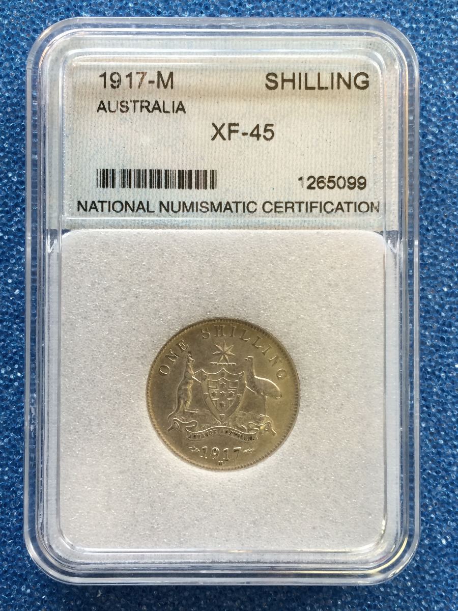 Australia 1 Shilling1917-M; NNC certified XF-45.