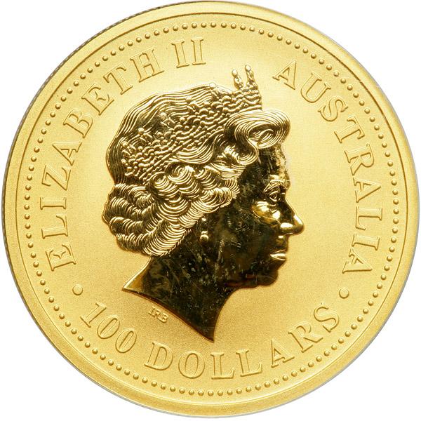 Australia. 100 Dollars, 2000. KM-468. Weight 0.9990 ounce. Elizabeth II. Reverse: Two kangaroos bounding left. PCGS graded Gem Uncirculated, World Trade Center Ground Zero Recovery 9-11-01.